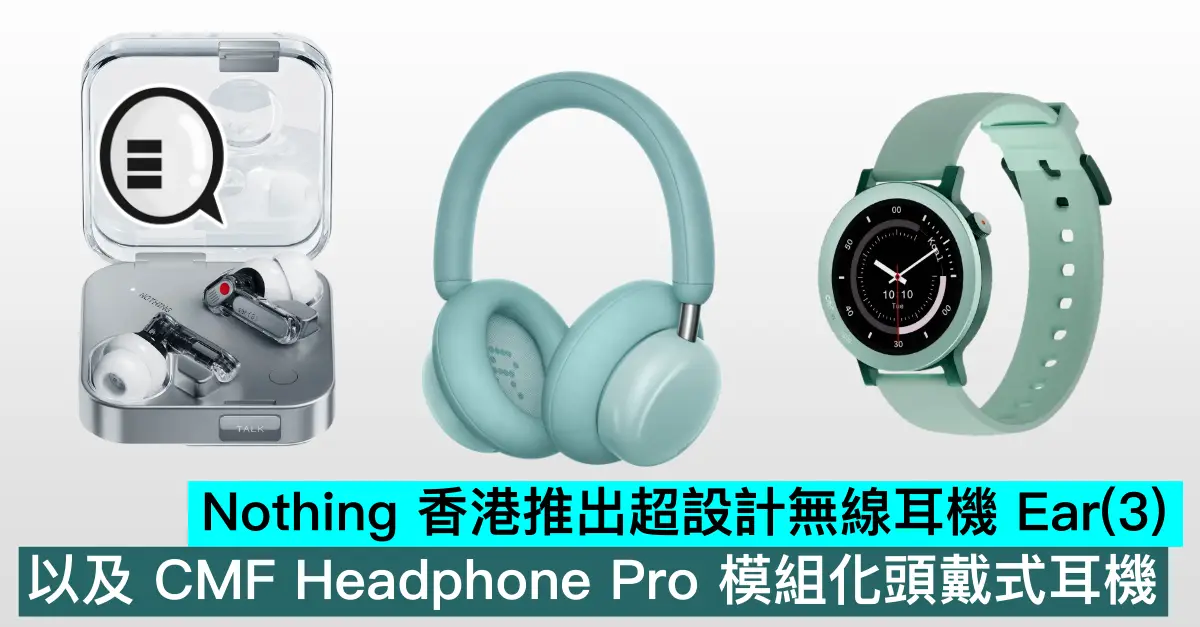 Nothing 香港正式推出了全新的真無線耳機 Ear(3),CMF by Nothing 發佈了首款頭戴式 ANC 耳機 Headphone Pro。