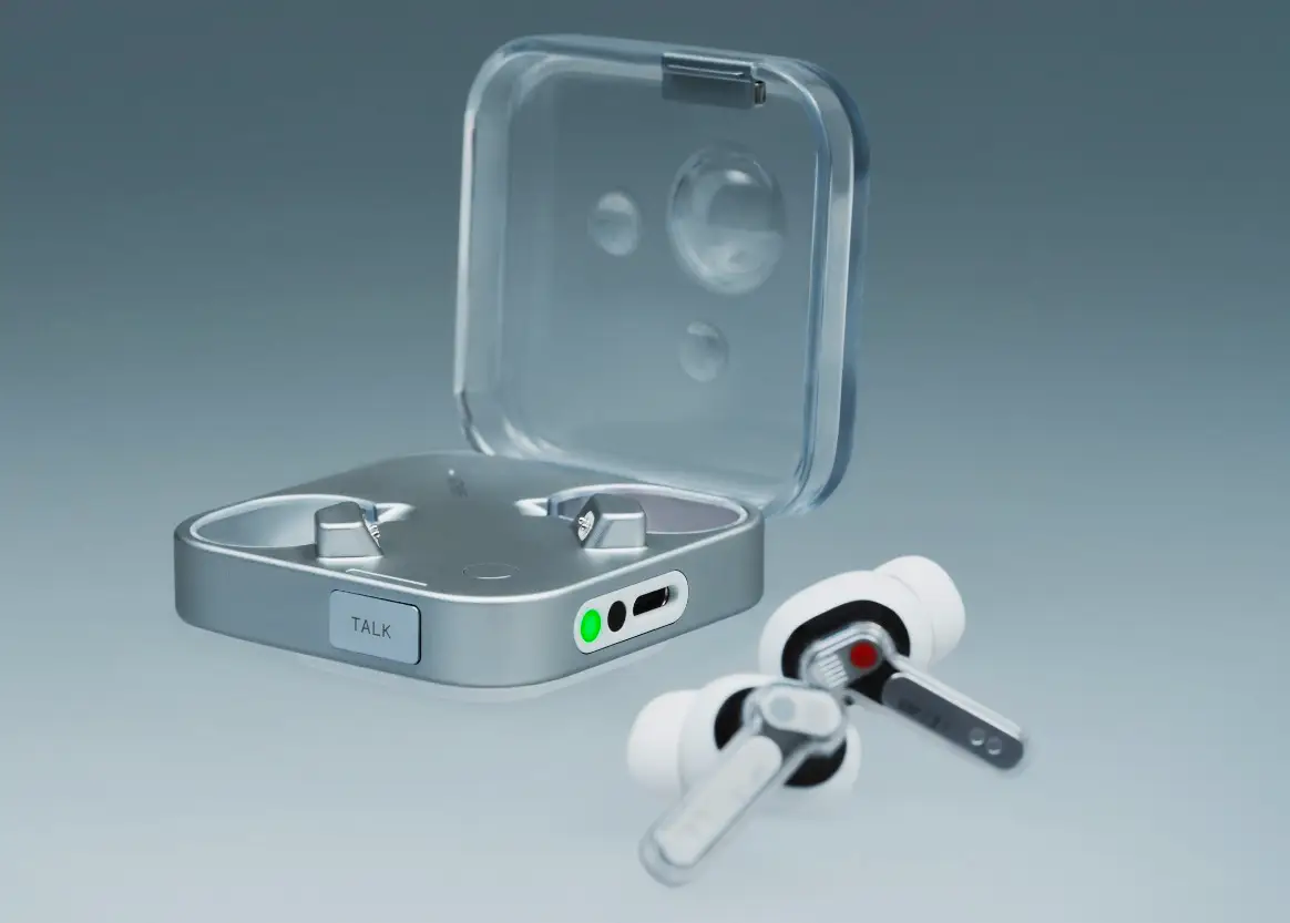 Ear(3) 的核心,Super Mic 和主動降噪,充電盒內有雙麥克風系統,可以更聚焦於收錄用戶聲音,最高可消除高達 95d B 的噪音,保證通話清晰。用戶按下充電盒上的 TALK 按鍵就可以啟動 Super Mic,用戶也可使用 Super Mic 進行充電盒錄音,按下 TALK 按鍵,語音備忘錄能夠自動同步到 Essential Space,還能夠進行文字轉錄(需配合 Nothing OS)。
