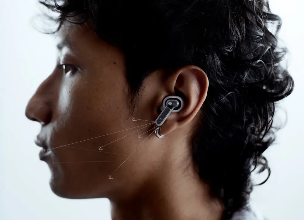 耳機有三組定向麥克風,搭配骨傳導語音收集單元,保障精確收音。進行了超過 2000萬小時真實音訊訓練的多通道 AI 環境降噪,風噪減少能夠達 25 dB 以上。自適應降噪最高45dB,每 600ms 根據環境進行調整、每 1875ms 監測配戴漏音情形,確保隔音萬無一失。