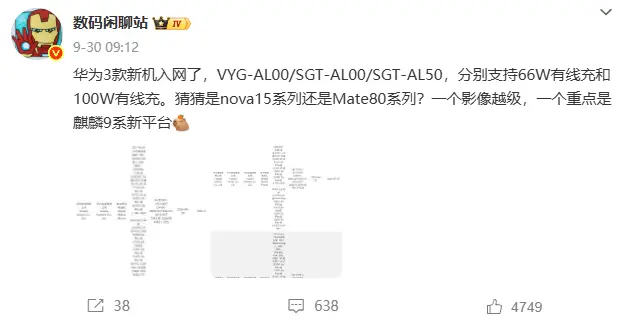 根據最新入網信息顯示, HUAWEI 三款型號為 VYG-AL00、SGT-AL00 和 SGT-AL50 的新機已正式通過認證,數碼博主 @數碼閒聊站 確認這些裝置正是備受期待的 Mate 80系列。