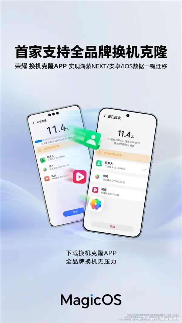 在互聯方面,HONOR Magic8 系列實現重大突破,打破 iOS、Android 、鴻蒙系統壁壘。用戶可在 Mac 上直接拖拽手機文件,鴻蒙裝置數據能無縫複製,告別微信傳文件的繁瑣。同時,它支援手機、手錶、耳機、平板全場景聯動,覆蓋生活、辦公、娛樂多場景,此前 HONOR 已實現三系統手機互聯分享,此次進一步攻克鴻蒙 NEXT 互通難題,大幅減輕用戶換機負擔。