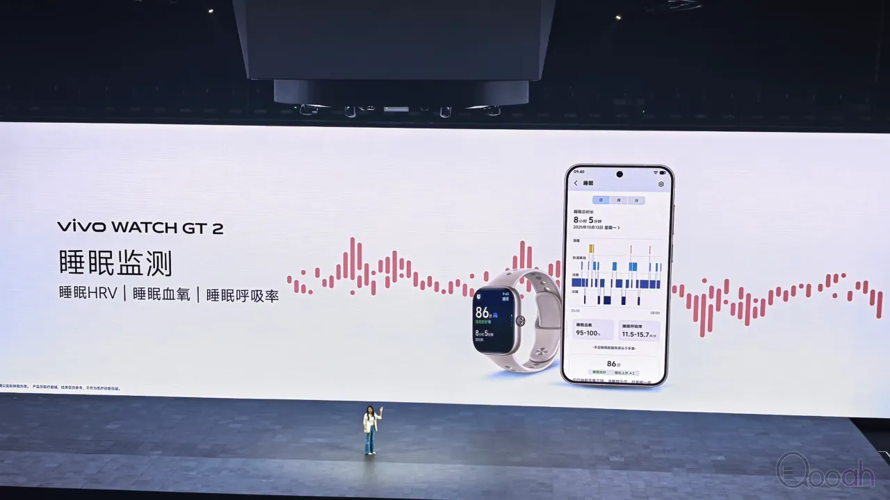在健康管理方面,vivo WATCH GT 2 具備全天候健康監測能力,睡眠時可對 HRV、血氧、呼吸率等關鍵指標進行綜合分析。