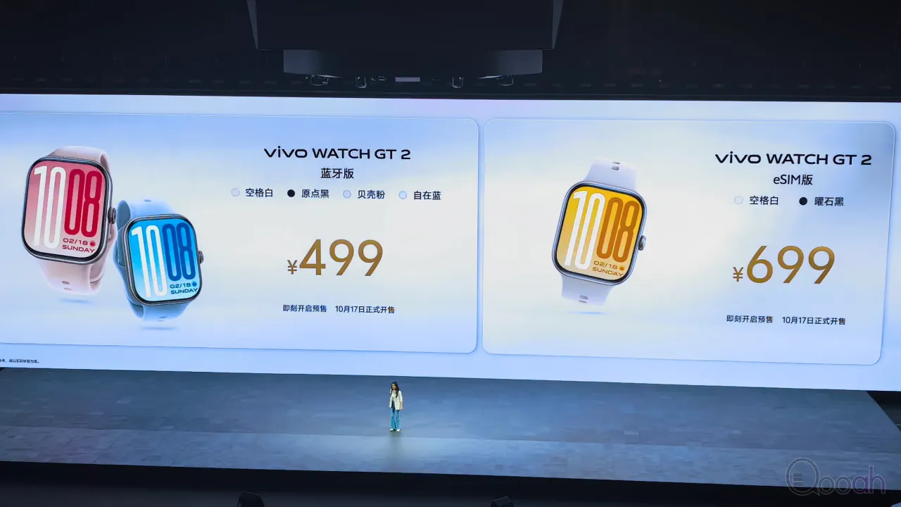 vivo WATCH GT 2 確定於10月17日正式發售,目前已在京東平台開啓預約。產品提供兩個版本:藍牙版售價 499元,eSIM 版則為 699元。