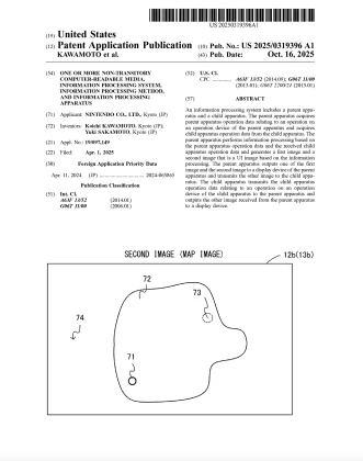 專利信息顯示,該申請由任天堂公司提交,發明者為 Koichi KAWAMOTO 與 Yuki SAKAMOTO,2025 年 4 月 1 日提交申請,2025 年 10 月 16 日公開,同時享有 2024 年 4 月 11 日日本專利申請的優先權。
