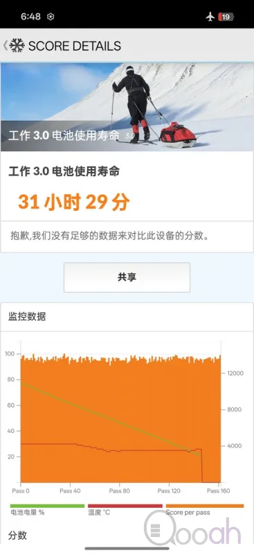 OPPO Find X9 Pro 採用 7500mAh 電量,電量在同級手機中出類拔萃,PCMark 使用時間更達到 31 小時 29 分鐘,有相當出色的續航力。