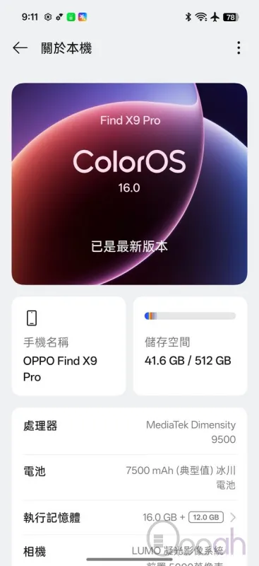 OPPO Find X9 Pro 是一款全面升級的旗艦手機。配備天璣9500處理器和12GB RAM,效能頂級。7500mAh大電池提供超過31小時的續航,表現出色。哈蘇調校的三鏡頭系統,涵蓋廣角、超廣角及3倍遠攝,色彩真實,並支援高倍無損變焦與獨特 XPan 模式。AI 功能豐富,包括寫作、翻譯、消除等實用工具。無論效能、拍攝或續航,都是稱職的主力機。
