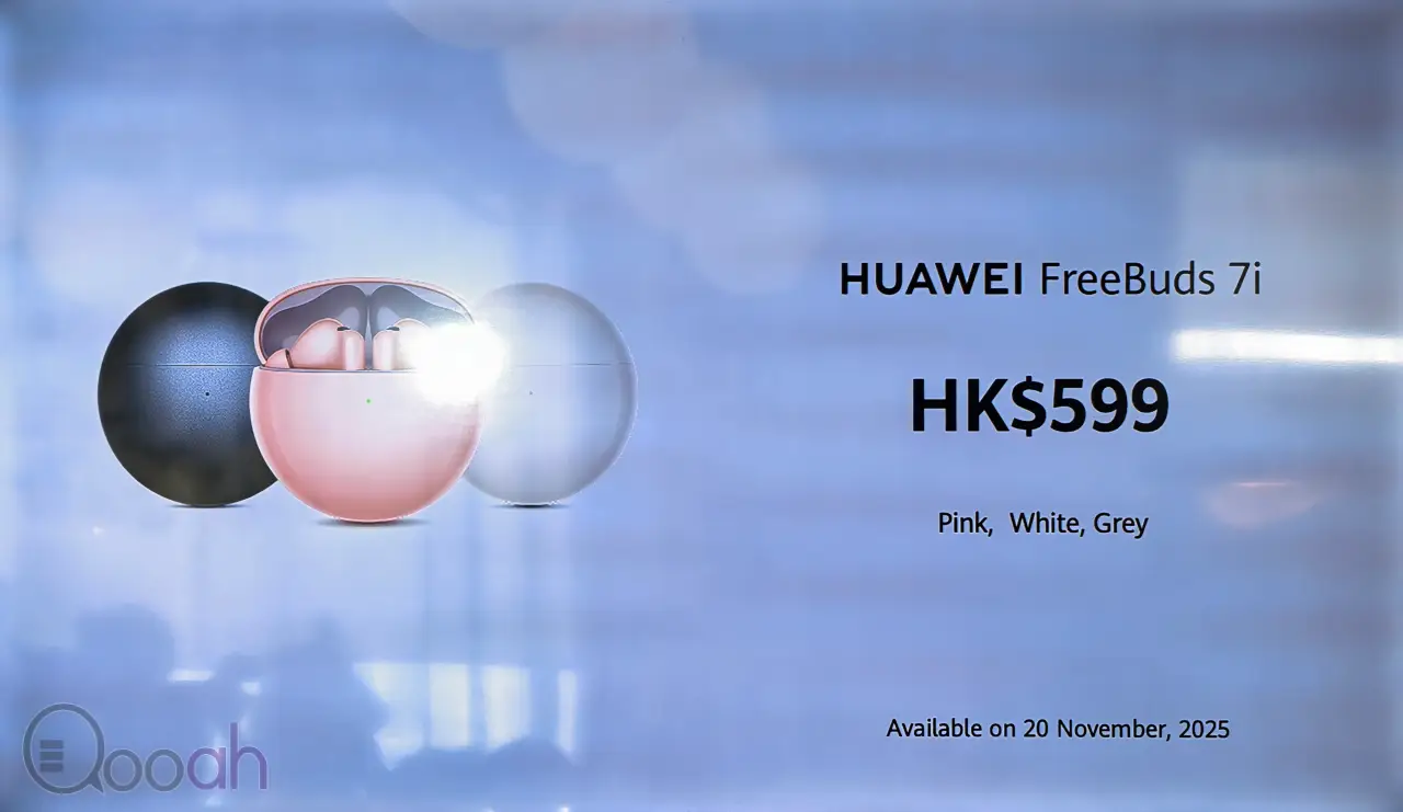 HUAWEI Freebuds 7i 可選櫻語粉、貝母白、深 空灰配色,售價為 HK$599。