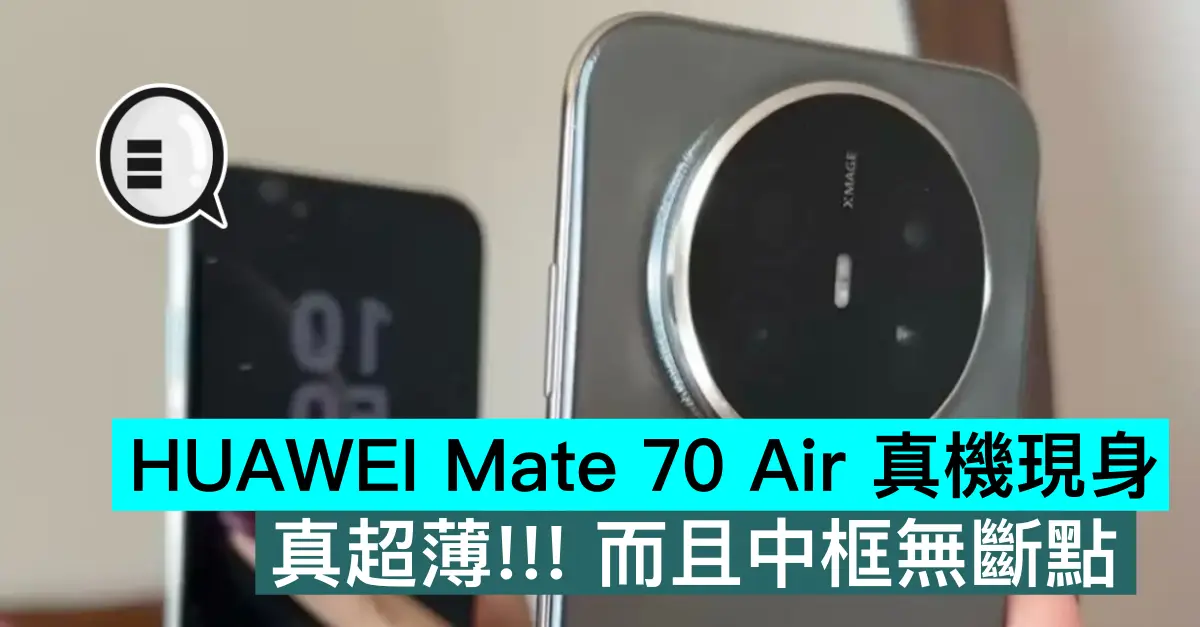 萬眾期待的華為史上最薄 Mate——HUAWEI Mate 70 Air 最快於本月發佈,近期其外觀設計被首次曝光。