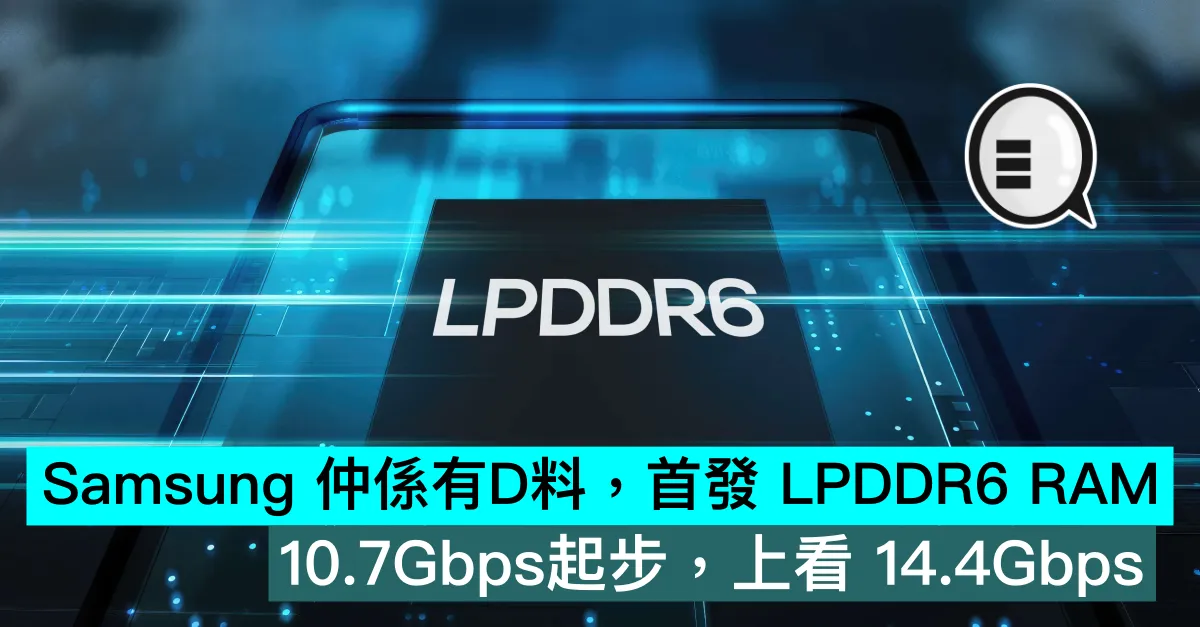 目前 Samsung 正式確認,將會在 CES 2026 展示全球首款 LPDDR6 RAM,可以達到 10.7Gbps 的高速率,可以換算為 10.7GT/s、10.7GHz。