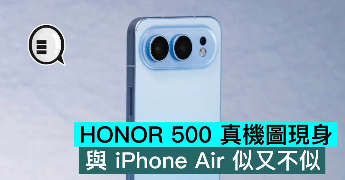 消息源 @數碼閒聊站 曝光了 HONOR 500超級標準版的真機圖,從展示圖片中可以看到 HONOR 500超級標準版配色為藍色,使用了與 Apple 類似的一體冷雕工藝背板,整體外觀是大R角+直邊、直屏的設計。手機機身的側面也搭載了與 Apple Air 類似的獨立拍照鍵,據悉這個獨立拍照鍵可以支援快速抓拍、自定義、AI入口等功能,後置鏡頭是橫向分布,比 Apple 多一個鏡頭,所以 HONOR 500超級標準版的整體外觀與 iPhone Air 的外觀有相似之處。