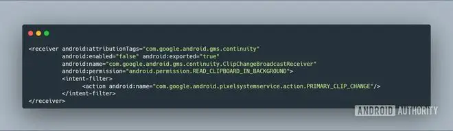 推測 Android 的通用剪貼板功能是由 Pixel 系統服務應用負責,會以請求 READ_CLIPBOARD_IN_BACKGROUND 權限的方式監控剪貼板內容的變化。