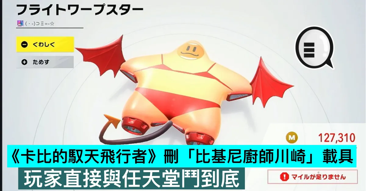 然而發售不久後,一款源自 2020 年網絡梗的「比基尼廚師川崎」自製載具迅速爆火。玩家利用貼紙縮放旋轉功能改造標準「傳送星」載具後上傳至市場,引發玩家狂歡,價格也隨之飛速上漲。有日本玩家調侃「大家都覺得它會下架,所以價格漲得飛快」,果不其然 6 小時後該設計便被任天堂下架,不少玩家表示不滿,有用戶直言「永遠不會原諒任天堂」。