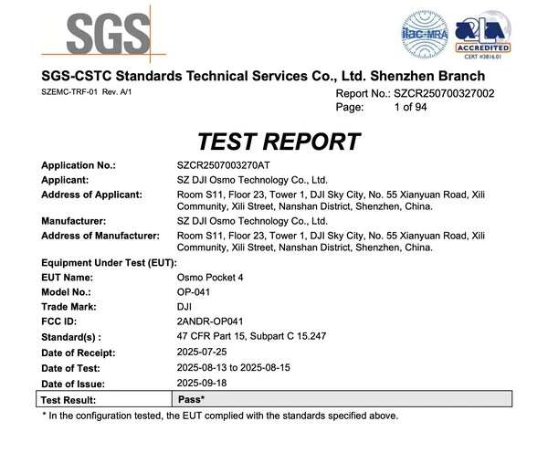 該機由深圳市大疆靈眸科技有限公司生產,已通過 FCC 相關測試,其詳細參數的曝光讓消費者對這款便攜雲台相機的上市充滿期待。