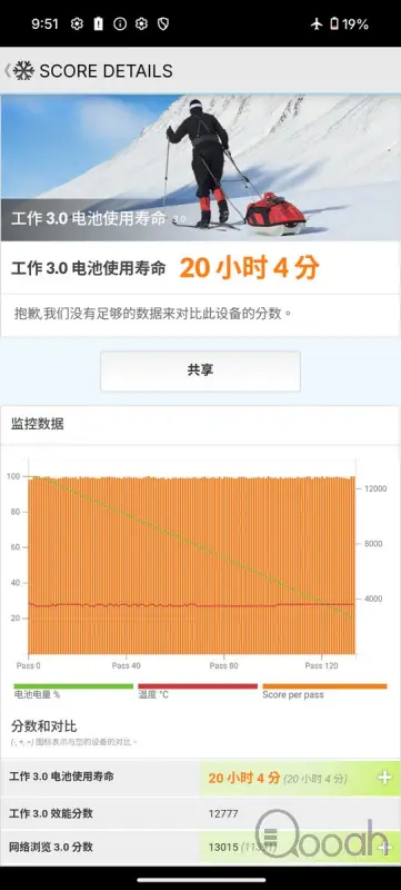 Nothing 3a Lite 電量為 5000mAh,PCMark 使用時間測試結果為 20 小時 4 分鐘,有相信不錯的續航力。