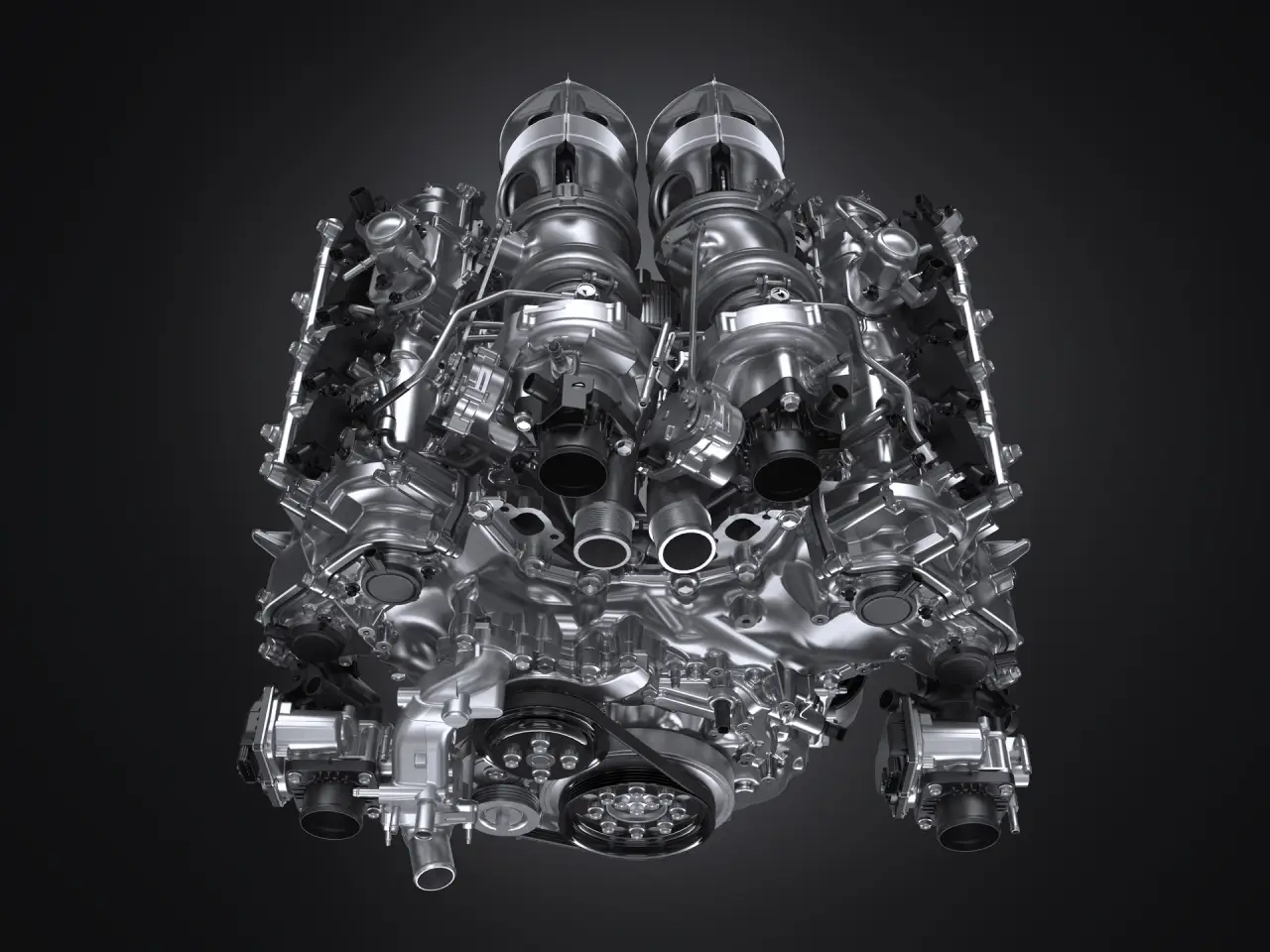 全新的 V8 引擎採用「熱 V」佈局、乾式油底殼等技術,整體緊湊更輕。未來該引擎會應用於更多車型,並承諾會持續符合未來更嚴苛的排放法規,以確保長期量產。