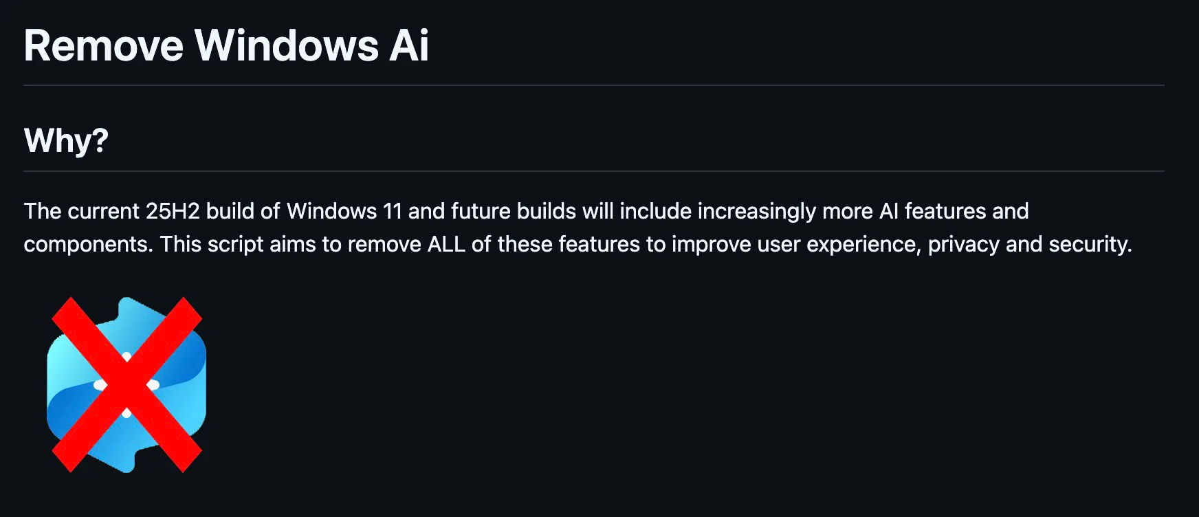 開發者特別說明,為保證工具穩定可靠,當前版本僅針對已公開發佈的 AI 功能進行處理,不會涉及尚在測試階段的預覽功能。此外,若用戶希望進一步管理其他AI相關服務(例如 Gaming Copilot),項目的 GitHub 頁面也附有詳細的手動操作指引,這些設置大多通過簡單的開關即可完成調整。