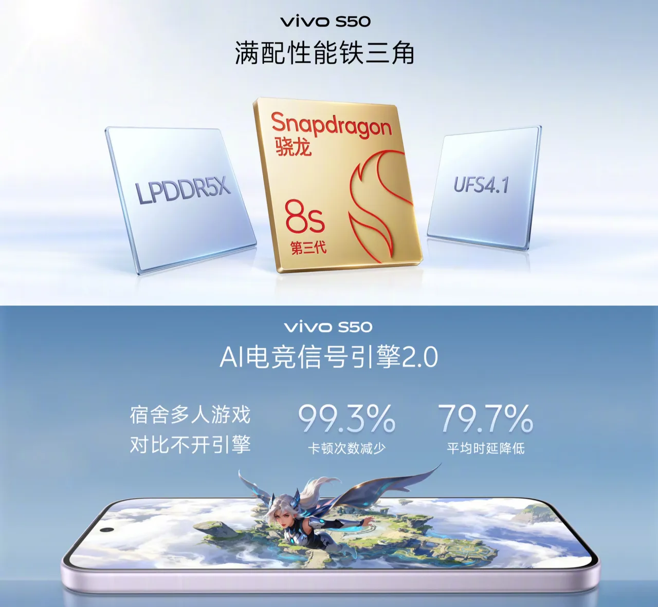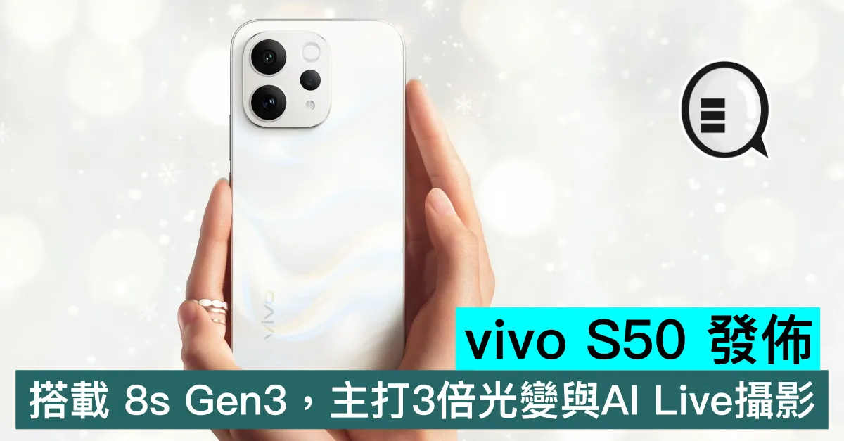 規格方面,vivo S50 採用 6.59吋屏幕,搭載高通 Snapdragon 8s Gen3 處理器。機身內置 6500mAh 電池,支援 90W 閃充。