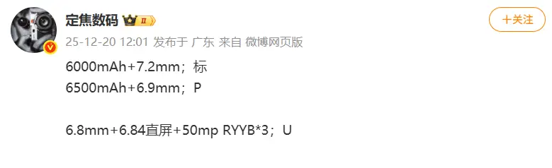 博主 @定焦數碼 發文爆料 HUAWEI nova 15系列的消息,確認了機身尺寸與電池容量參數。