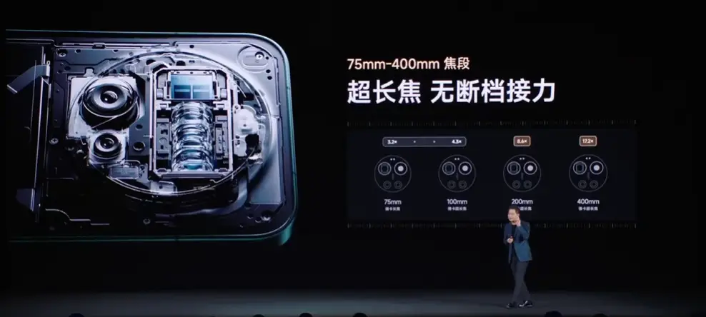 長焦鏡頭實現了 2億像素連續光學變焦,配備1/1.4吋大底潛望結構,並通過 LEICA APO 復消色差認證。它可在 75mm 至 100mm 焦段之間無縫切換,覆蓋多個經典人像焦段,全程無需數碼裁切。借助特殊鏡片組合,有效消除了長焦端常見的色散問題。該鏡頭還支援 30cm 長焦微距拍攝,兼顧遠景與近景創作。此外,手機還搭載了一個 5000萬像素超廣角鏡頭,支援 5cm 超級微距與 115° 廣闊視角。