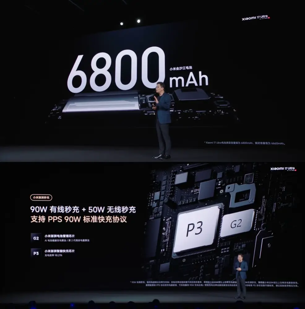 手機內置 6800mAh 大容量電池,支援 90W 有線快充、80W 無線快充以及反向充電功能。