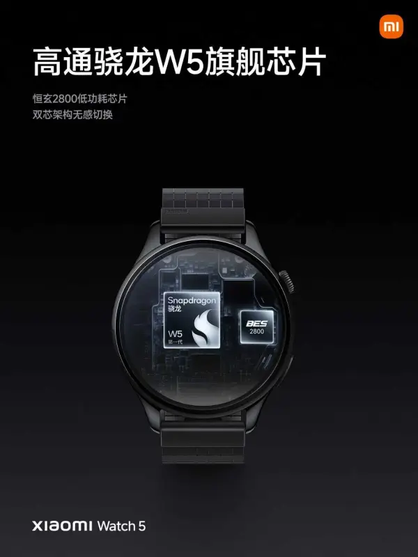 規格方面,屏幕為 1.54吋 AMOLED 面板,全局亮度達 1500nit。小米手錶5 搭載智能雙晶架構,支援高通 W5 Snapdragon 處理器與恆玄 2800低功耗處理器無感切換。eSIM 版可以獨立使用,手錶終端支援通話、上網、在線聽歌、移動支付及獨立運行微信、支付寶。小米手錶5 內置 930mAh 電池,在典型場景下續航可達6天,省電模式下更可延長至18天。