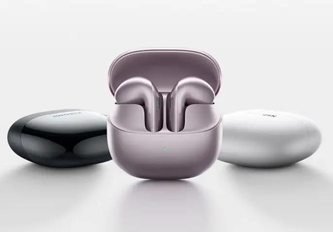 小米 Buds 6 外觀方面,提供星雲紫、珍珠白、鈦光金及月影黑四款配色,單耳重4.4克,使用了仿生曲線的設計。