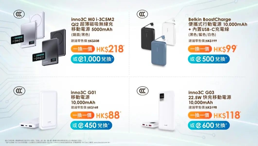 換購方式:攜舊行動電源至任意一間1O1O或csl AI Store,交予職員回收後,即可選購低至半價的CCC認證行動電源,數量有限,售完即止。