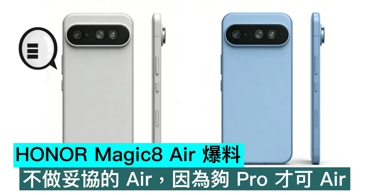 該機型預計將與 HONOR Magic8 RSR Porsche Design 一同發佈,並計劃在農曆新年前正式亮相。關於該機型規格,將配備聯發科天璣9500 旗艦平台,搭載 6.31吋屏幕,並擁有 5500mAh 電池,支援 80W 有線閃充。相較於其他 Air 機型,該機型不僅在性能上採用最新旗艦平台,還兼顧了大容量電池與旗艦級影像系統,有望成為行業內綜合體驗最為均衡,且規格最強的 Air 產品。