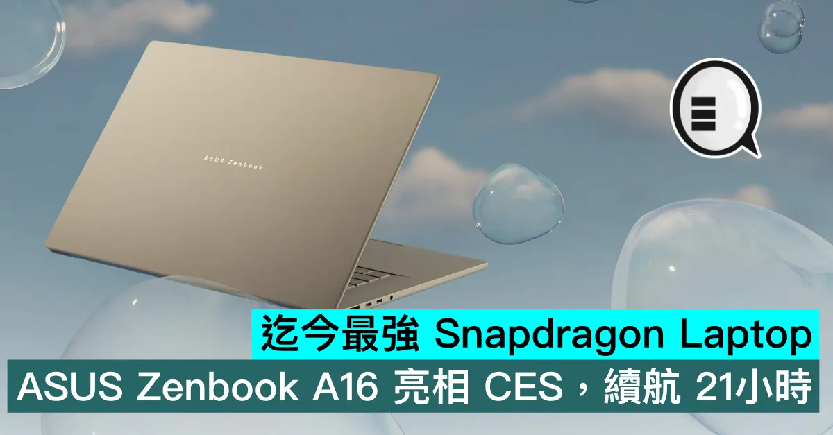 在 CES 2026 展會期間,ASUS 正式推出 Zenbook A16(UX3607)筆電,憑借頂尖硬件規格號稱迄今為止「速度最快、性能最強」的 Snapdragon 機型。