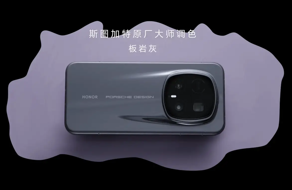 HONOR Magic8 RSR Porsche Design 傳承經典保時捷流光飛線設計,融合了藝術與功能,辨識度十足。HONOR Magic8 RSR 此次推出兩款配色,分別為月光石、板岩灰。