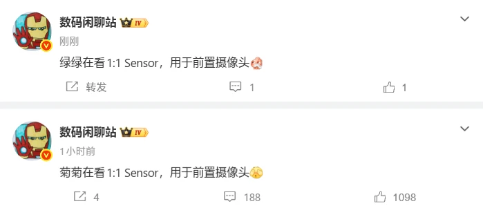 近期博主 @數碼閒聊站 爆料,暗示華為和 OPPO 都在開始瞭解 1:1 Sensor,用於前置鏡頭設計。1:1方形傳感器的體積雖然會略微大一些,但對比拍攝方面的體驗提升,性價比還是極高的。