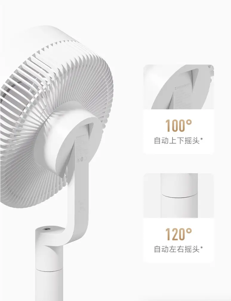 送風方面,風扇支援上下 100度與左右 120度 的自動搖頭,覆蓋範圍較廣。風扇輸出風量達 28.7 m³/min,2分鐘整屋循環,並支援 100檔風速調節,可模擬吹出 4 種不同的自然風感,以滿足不同場景需求。