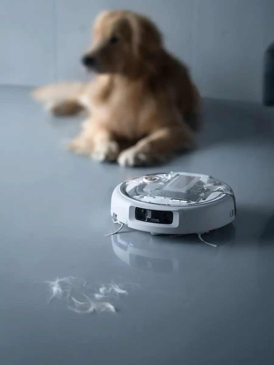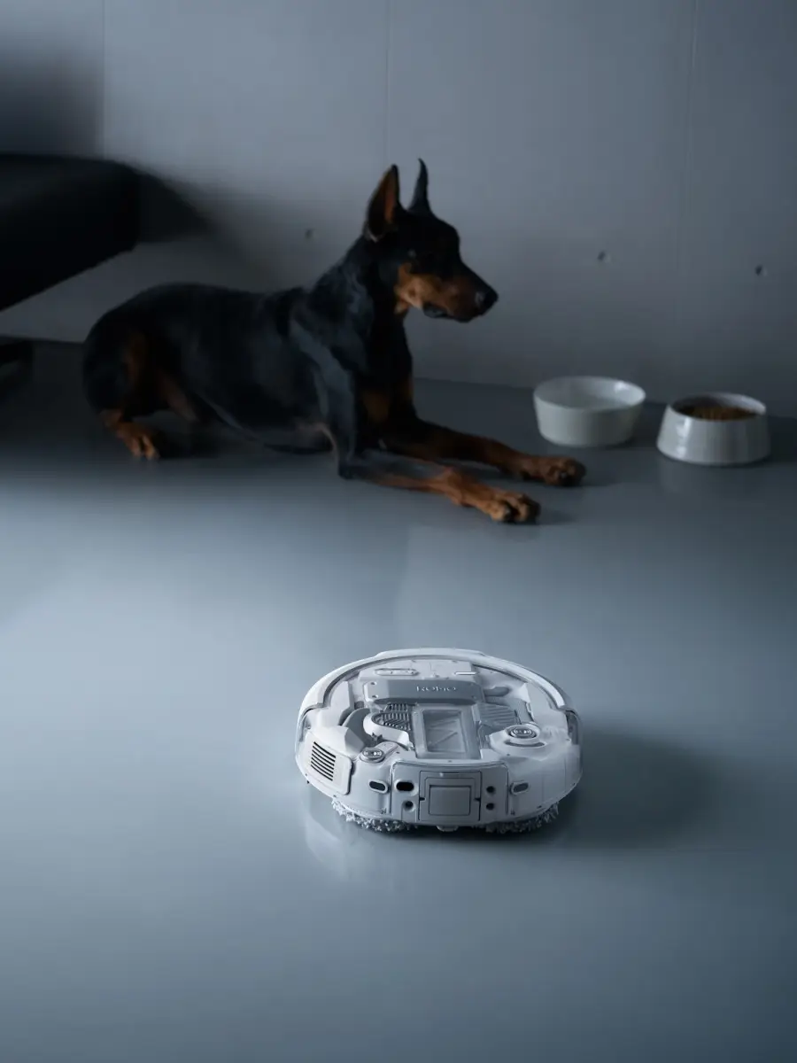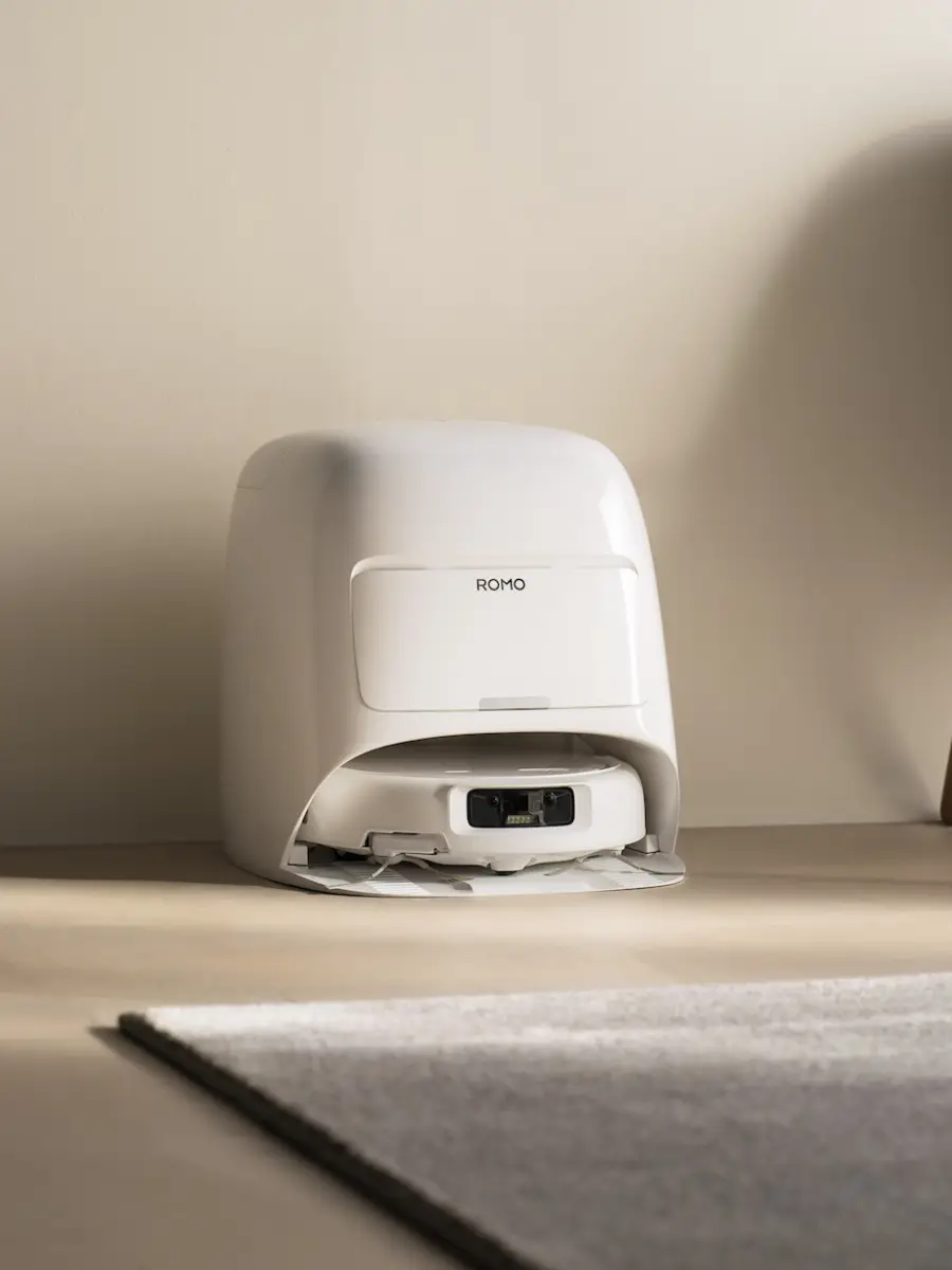 自清潔方面,ROMO 使用一體化拖布盤設計代替傳統易積污的刮刷和濾網結構,從根本上避免污垢堆積。擁有 16mm 超大口徑吸污口和四路高壓水柱沖洗,ROMO 能瞬間清除毛髮、棉絮等易堵污物,用戶無需進行手動拆洗。基地台採用三段式降噪系統,集塵噪音能夠降低 80%,讓用戶及寵物免受打擾。