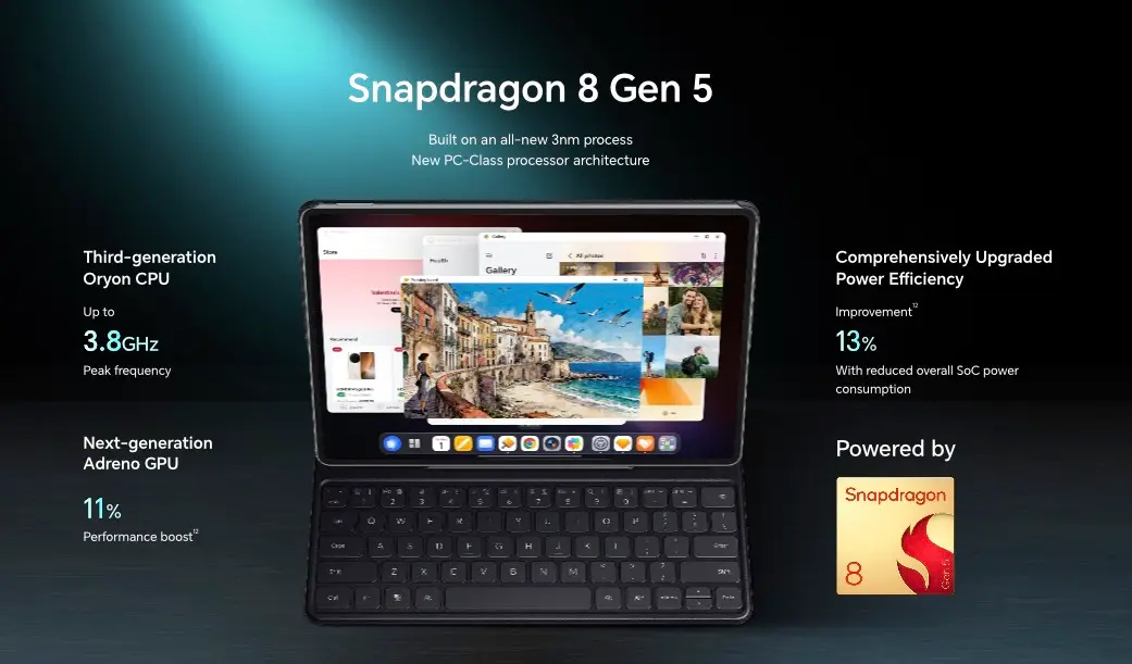 其他規格方面,平板搭載高通的 Snapdragon 8 Gen 5,配備了 10100mAh 大容量電池,後置鏡頭為 1300萬像素,前置鏡頭為 900萬像素,滿足基礎視像通話與掃碼需求。系統預裝基於 Android 16 的 MagicOS 10 操作系統,支援 Wi-Fi 7。