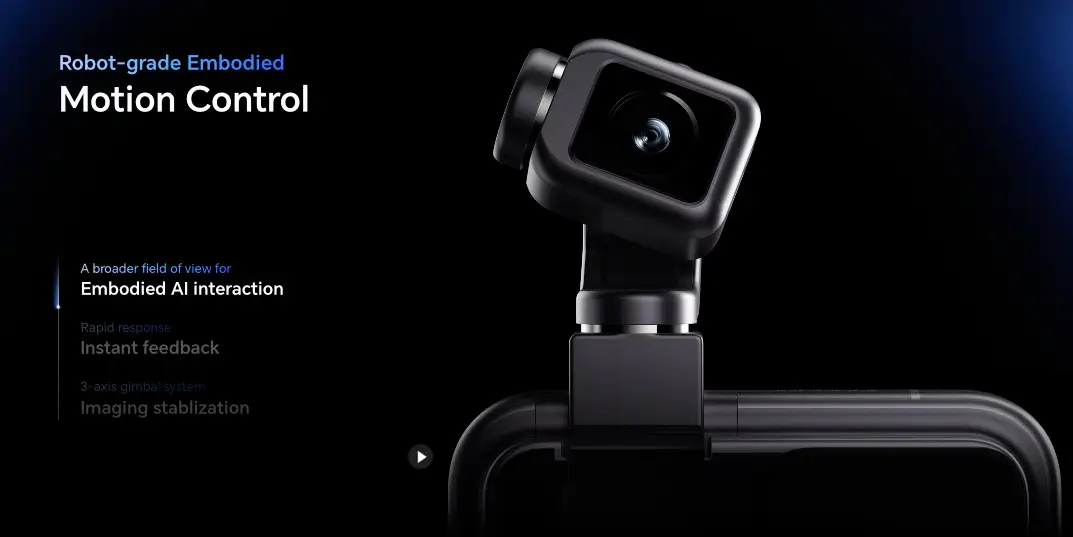 在硬件規格上,HONOR Robot Phone 預計將於今年下半年正式上市。它搭載了行業最小的 4DoF 雲台系統,通過微型電機的精密驅動,實現了在極小空間內的多軸運動控制,整體體積相比主流方案縮小了 70%。影像方面,該機配備了 2億像素傳感器,並聯合電影級影像品牌阿萊進行專業級技術調校,支援 AI 物體追蹤、AI 影片剪輯與智能拍攝,能夠實時感知拍攝場景並進行畫面補償,確保視頻輸出的極度穩定。