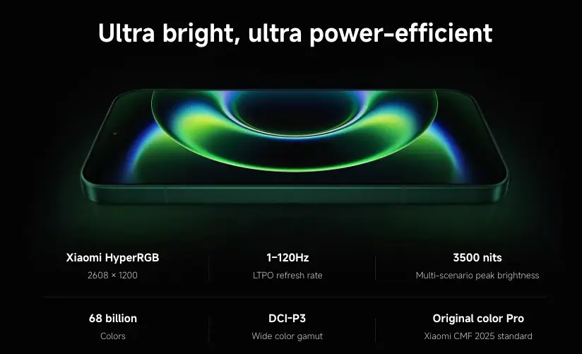 正面 6.9吋 120Hz LTPO AMOLED 平面螢幕,採用HyperRGB 全 RGB 排列面板,峰值亮度高達 3500nit ,視覺體驗極致震撼。