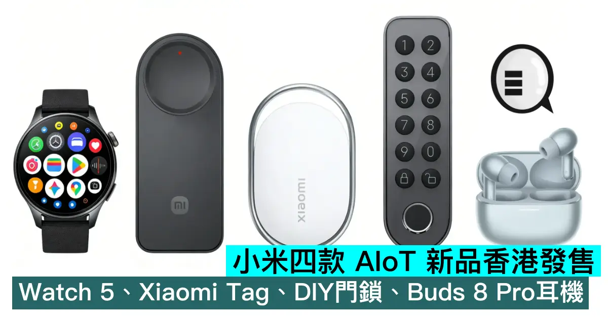 小米三款全新 AIoT 產品 Xiaomi Watch 5、Xiaomi Tag、Xiaomi DIY 智能門鎖、REDMI Buds 8 Pro 於香港正式發售,三款產品分別覆蓋便攜追蹤、智能家居、音頻娛樂場景,以實用功能與高適配性為香港用戶打造多元智能生活體驗,均於 3 月 2 日中午 12 時起在全線小米之家、小米官網及香港指定零售商門市與網站同步上架
