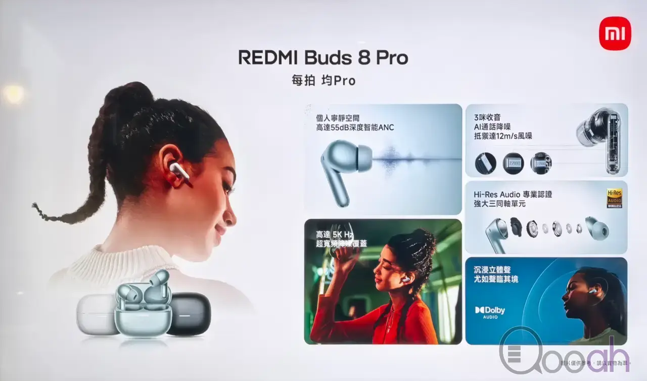 以沈浸式音效與智能降噪為核心,搭載升級版同軸三驅動器配置,能呈現更沈的低音、更清晰的人聲與更均衡的全頻音效,在 Dolby Audio 加持下提升音效立體感與清晰度,每顆耳機內置獨立音處理單元,保障不同設備與應用間的音質一致性。同時配備小米立體聲,提供標準、音樂、影片、遊戲、有聲書五種專屬空間音效模式,精准適配不同聆聽場景。降噪方面支援最高 55dB 主動降噪與 5kHz 超寬頻率降噪,智能適應性實時降噪每秒最高 32000 次採樣率,可動態調整降噪效果,通話端搭載三麥克風 AI 降噪與專用抗風噪設計,風速 12m/s 環境下仍能保證清晰通話。續航上支援快速充電,充電 5 分鐘可實現 2 小時聆聽,單次滿電連續播放 8 小時,搭配充電盒總續航達 33 小時,還具備直觀觸控操作、雙設備藍牙連接功能,支援 IP54 防塵防水,提供冰釉白、薄霧藍、玄悟黑三種配色,建議零售價為 HK$459。
