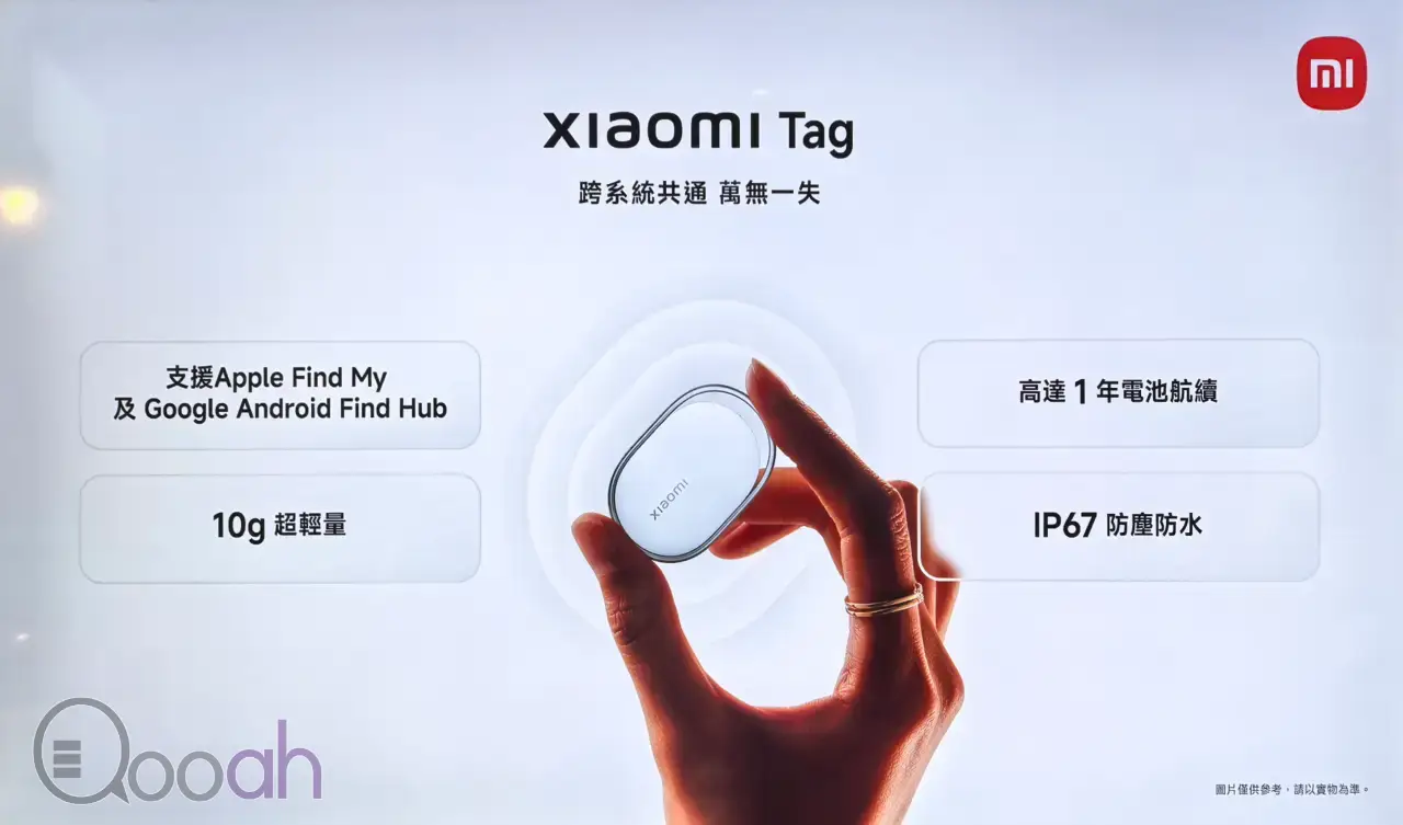 Xiaomi Tag 主打便攜物品追蹤功能,兼容 Apple Find My 與 Google Android FindHub 雙生態,可在 iOS 或 Android 系統中實現無縫運作,輕鬆追蹤鑰匙、背包等日常物品。這款追蹤設備重量僅約 10g,搭配金屬外環與簡約外觀,內置掛扣設計開箱即用,能便捷附著在各類物品上。其採用可更換的 CR2032 電池,續航時長可達一年以上,同時支援 IP67 防塵防水等級,應對日常複雜環境更耐用。功能上支援遠程物品查找、遺失模式、協作尋找,還具備強化隱私保護機制,遇不明追蹤跟隨會自動觸發手機警示,Xiaomi Tag 提供 1 個裝與 4 個裝兩種選擇,建議零售價分別為 HK$89、HK$299。
