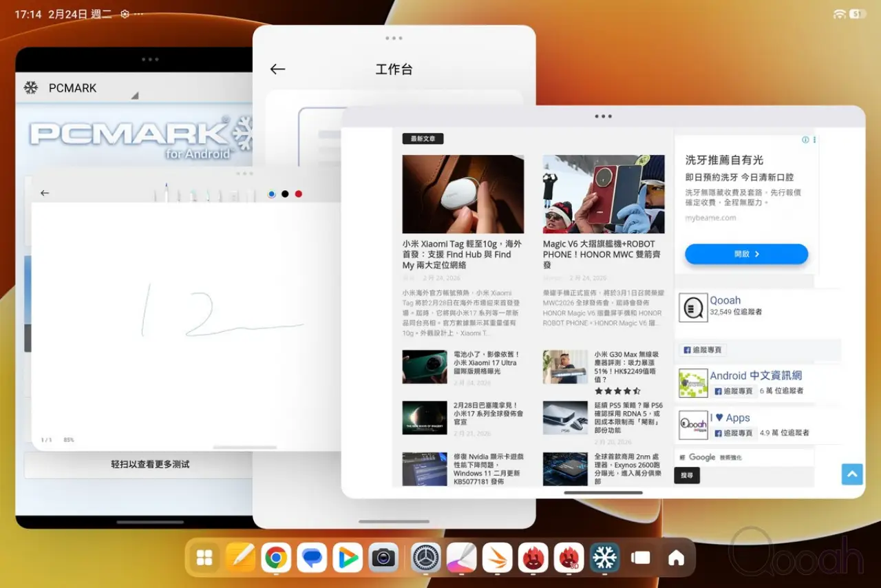 在對手如 Samsung 售價亦要約 HK$6,200,卻只應用 MTK 旗艦晶片,Xiaomi Pad 8 Pro 以不到 HK$4000 的售價,再次展現了小米在平板市場極致的性價比。其效能表現是最大賣點,搭載的 Snapdragon 8 Elite 處理器在平板機身散熱優勢下,跑分與遊戲表現皆屬頂級。此外,11.2 吋 3:2 比例的高規格屏幕、長達15小時的續航力,以及完整的 HyperOS 生態互聯功能,都讓它在影音娛樂與輕度生產力上有出色表現。雖然附帶的鍵盤保護套缺少觸控板稍嫌可惜,但考量其輕薄金屬機身、豐富的 AI 功能與遠低於對手的定價,似乎一切又可以接受了。