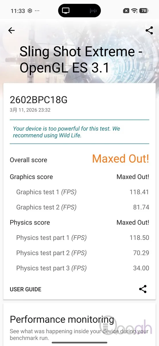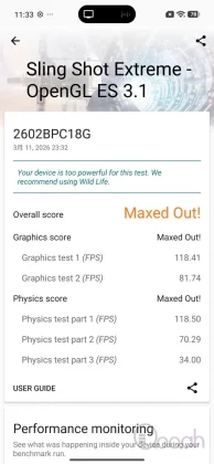 小米 POCO X8 Pro Max 硬件搭載 MTK 天璣 9500s CPU、最高 12GB RAM 及 512GB ROM,Antutu 跑分達到 264 萬分,3DMark Wild Life Extreme、Solar Bay Extreme 及 Sling Shot Extreme 分別是 5710 分、786 分及 Max Out 分數,玩現有的手遊都會十分流暢,配合 6.83 吋特大屏幕、400% 音量喇叭及背部燈效,用家可以完全當一部電競手機看待,遊戲表現估計可以媲美 iPhone 17 Pro Max。