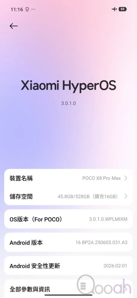 小米 POCO X8 Pro Max 內建特大 8500mAh 電量,運行 PCMark 使用時間測試,使用時間達到 24 小時 26 分鐘,超過一整天的使用時間,用作長時間打機或睇片會相當合適。而且,8500mAh 電量還支援 100W 快速充電,充電 24 分鐘可充 50% 電量,充電時間相當快速。