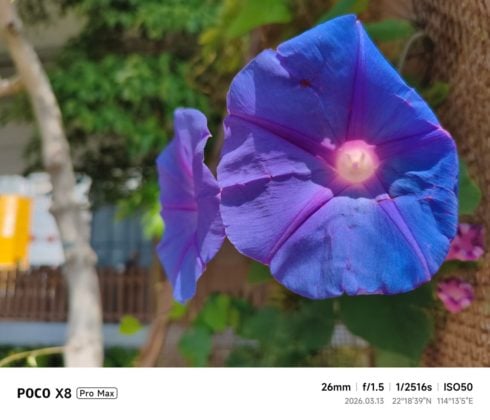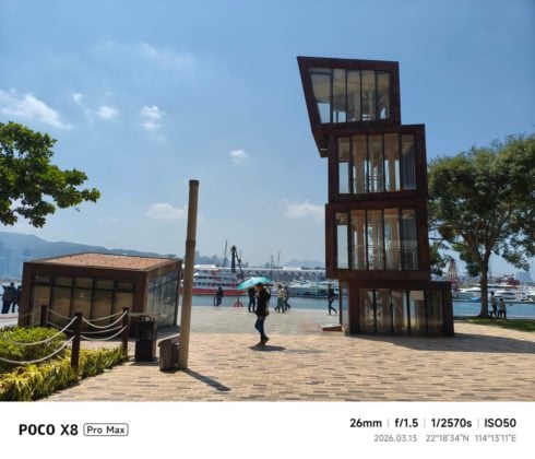 小米 POCO X8 Pro Max 的 26mm 主相機在日間拍攝可發揮相當不錯的水平,色彩真實細緻,更支援 2X 無損變焦,可當作 52mm 遠攝鏡頭,方便用家近拍或人像拍攝。16mm 超廣角鏡頭色彩亦有真實表現,但將相片放大,影像無疑是會鬆散,這是由於超廣角鏡頭只有 800 萬像素引致。