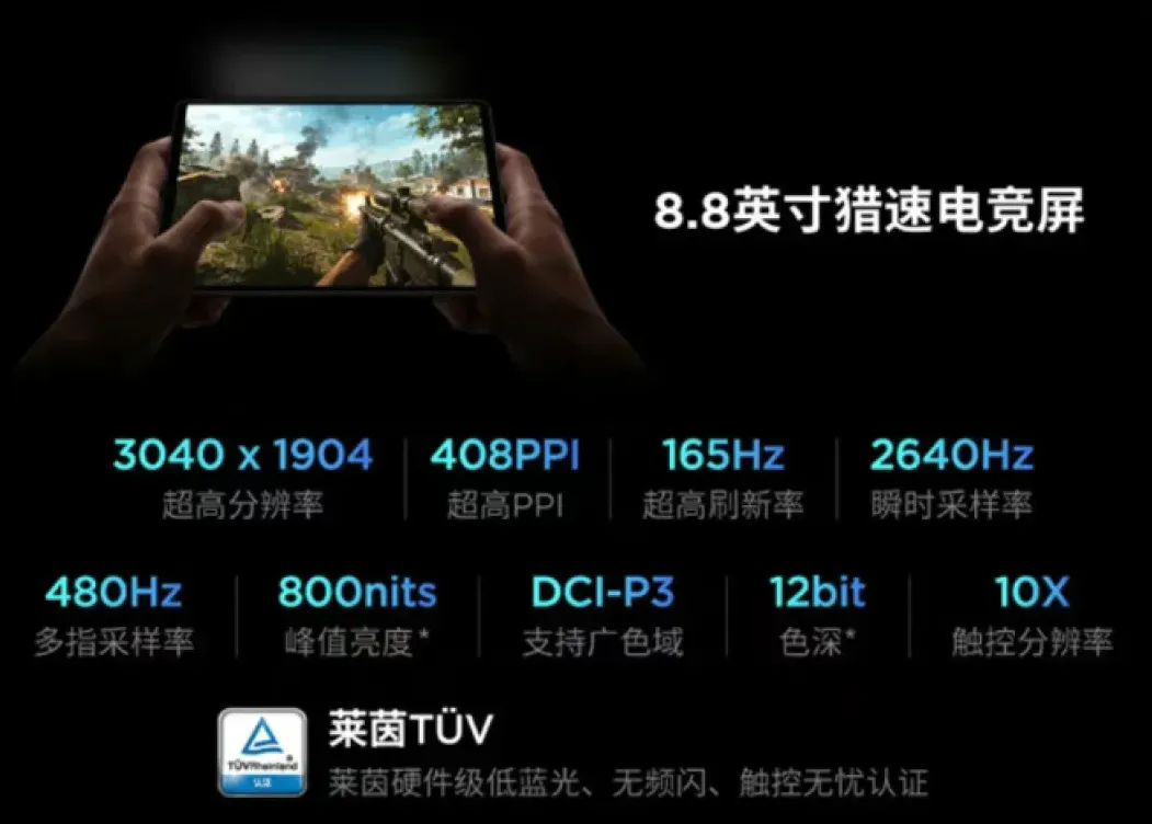 Lenovo 拯救者 Y700 五代採用8.8吋電競級屏幕,解像度達3840×1904,支援165Hz的超高刷新率。屏幕通過萊茵硬件級低藍光、無頻閃和觸控無憂等多項專業認證,清晰更護眼。