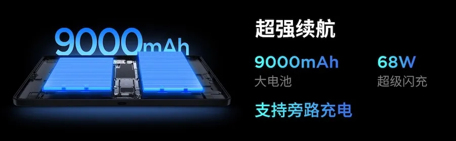 Lenovo 拯救者 Y700 五代內置 9000mAh 超大容量電池,支援 68W 超級閃充和旁路充電技術。旁路充電技術可以在充電打遊戲時降低設備發熱,性能更加穩定。