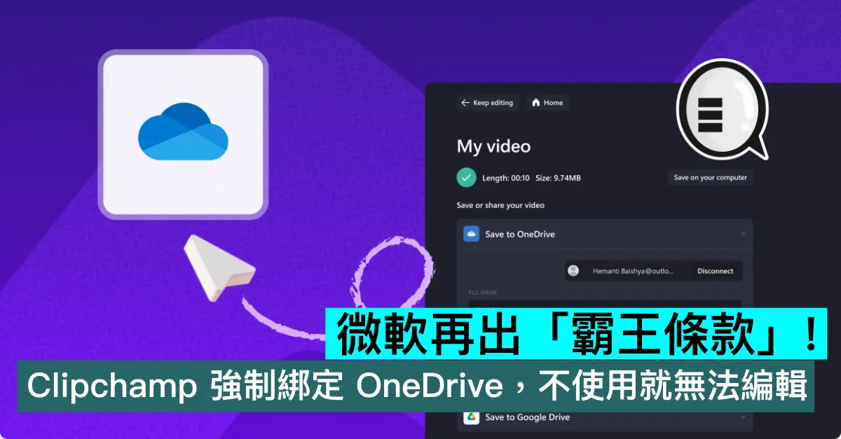 微軟對 Windows 11 自帶免費剪輯工具 Clipchamp 推出強制更新,將其與雲儲存服務 OneDrive 深度綁定,用戶必須把影片項目保存至 OneDrive 才能繼續編輯,本地儲存的項目將不再在軟件中顯示,這一操作引發用戶大量抗議。