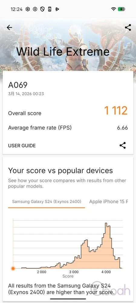 Nothing (4a) 規格搭載 Snapdragon 7s Gen 4 CPU、12GB ROM 及 256GB ROM,Antutu 為 1159685 分、3D Mark Wild Life Extreme 及 Sling Shot Extrme 為 1112 分 5529 分、Geekbench 6 CPU 及 GPU 分別為 1223 (單核) 3234 (多核)及 3460 分,性能只有入門至中低階手機水平。