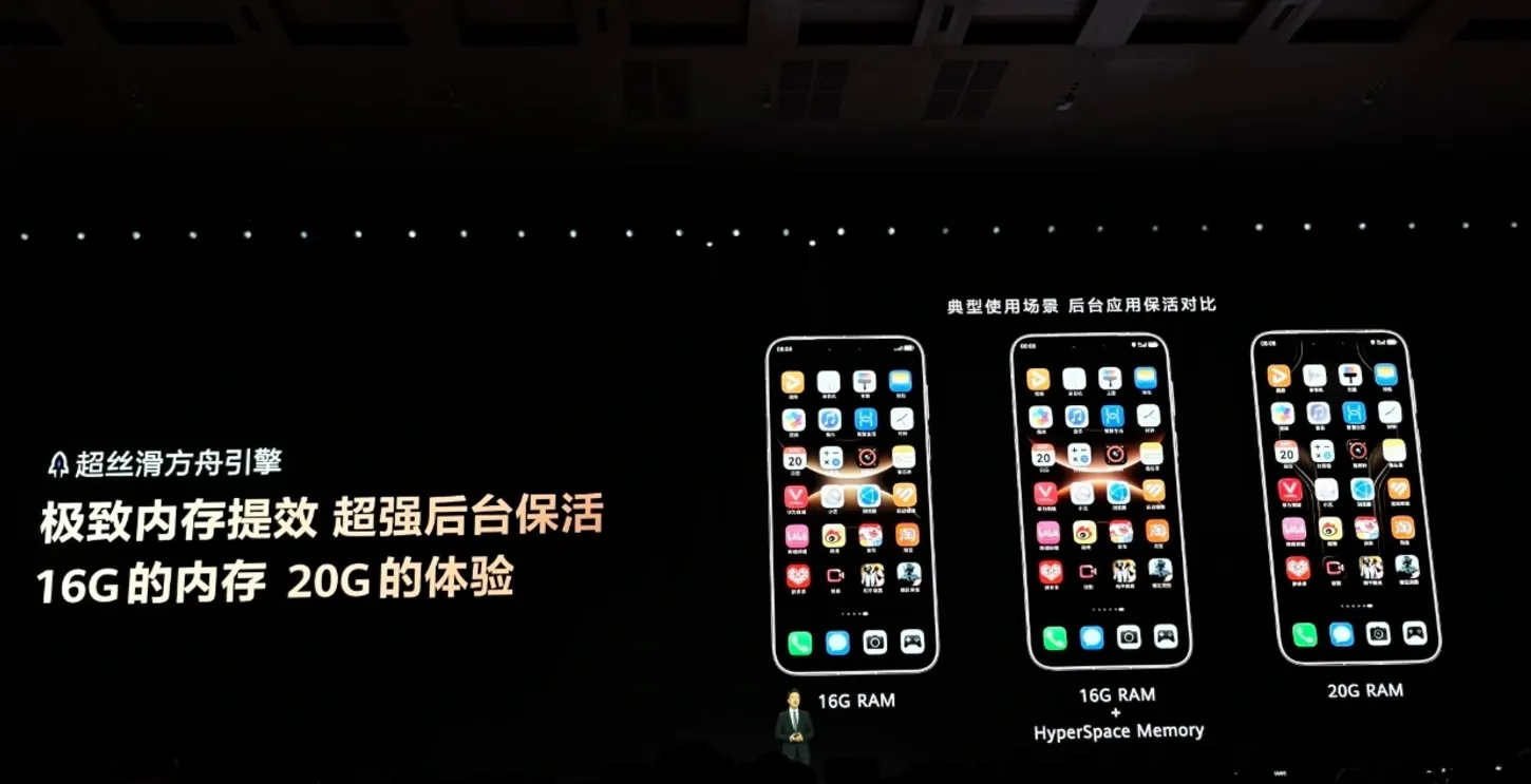 HyperSpace Memory 讓搭載 16GB 物理 RAM 的風馳版在實際使用中,獲得接近 20GB RAM 的流暢體驗。HUAWEI 官方稱,這項技術並非簡單的容量擴展,而是從底層提升 RAM 效率,著重點是解決了 Android 系統在高負載場景下的「殺後台」問題。