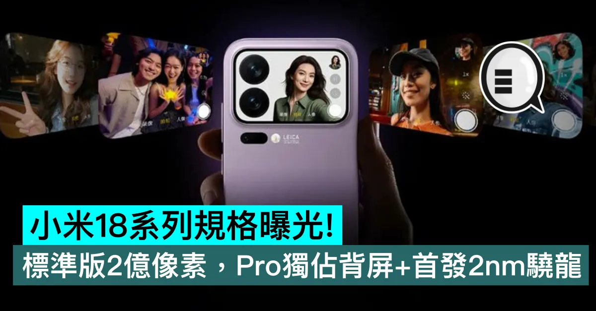 小米 Xiaomi 18 系列多款機型核心規格接連曝光,該系列預計 9 月正式發佈,包含標準版、Pro 及 Pro Max 三款機型,其中標準版影像大幅升級看齊 Pro,Pro 系列則憑借獨佔背屏和首發新處理器打造差異化體驗,整體規格迎來全面進階。