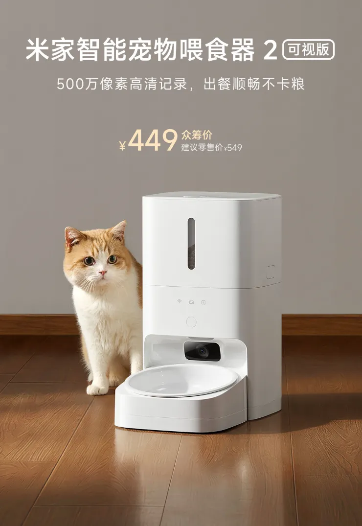 米家智能寵物餵食器 2 可視版正式在小米商城、小米有品開啓眾籌,眾籌價 449元人民幣,建議零售價 549 元,憑借餵飼 + 可視的雙重功能,成為養寵家庭的新選擇。